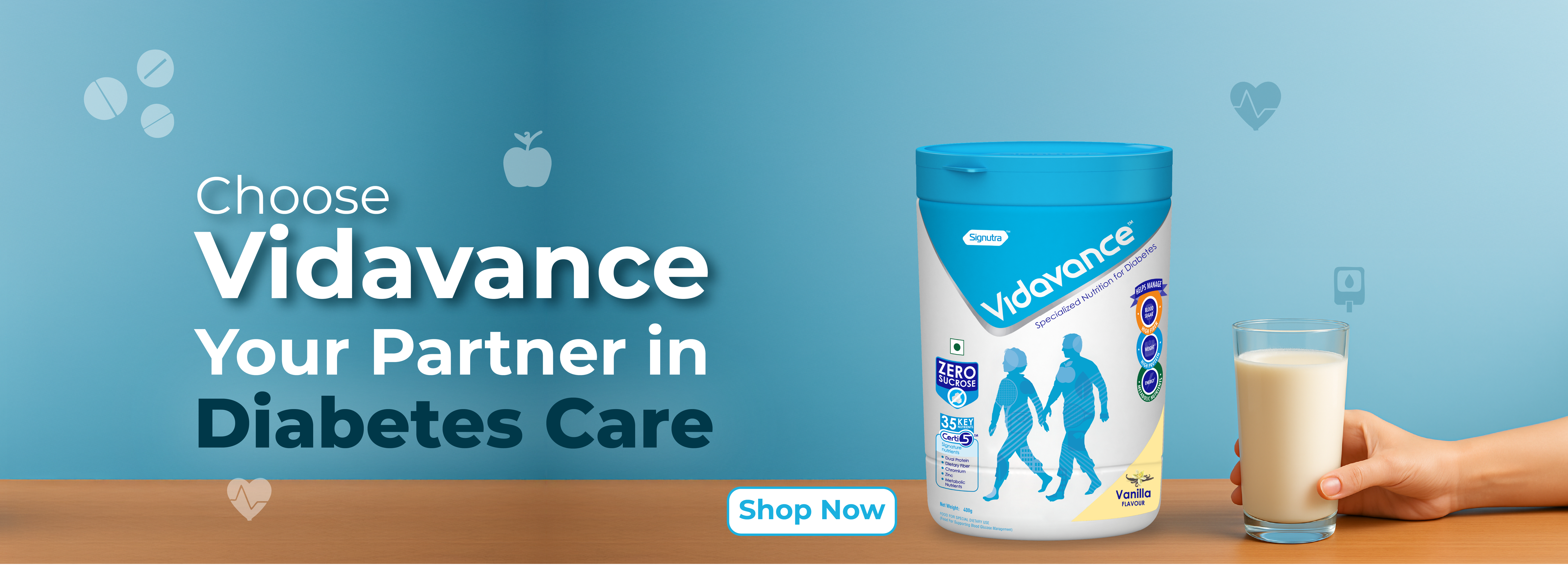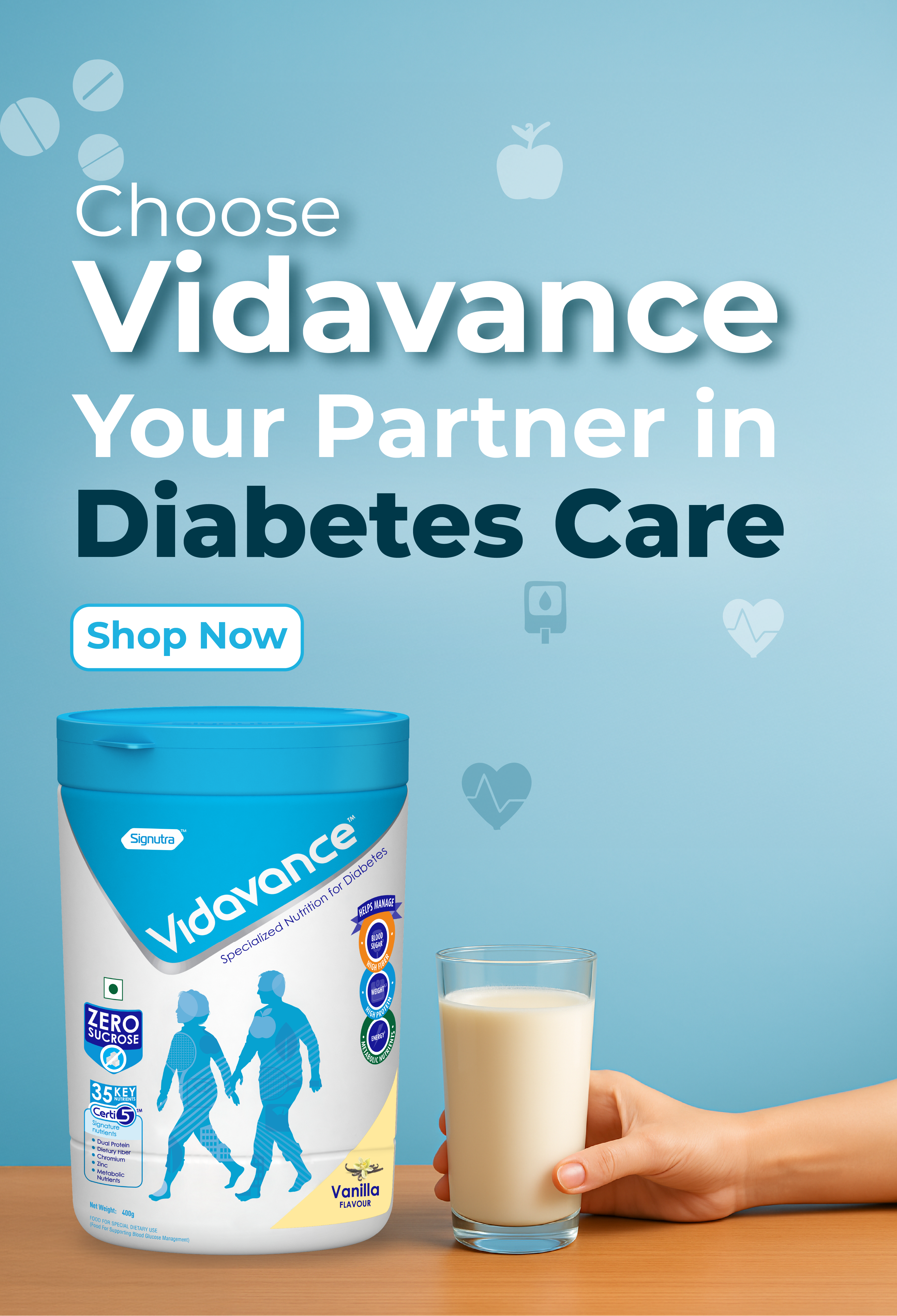It contains Lutein & Zeaxanthin for eye health, high protein, Calcium, and Vitamin D for strong bones and muscles, and DHA, Choline, and Iron for cognitive development. The formula also includes immune-boosting vitamins and minerals like Vitamin C, Zinc, and Selenium. Simply mix 2 scoops in 100ml of water or milk, twice daily for optimal benefits.