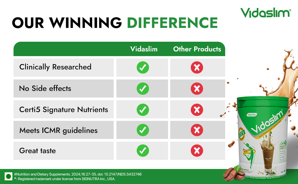 Vidaslim Meal Replacement Protein Shake offers a clinically proven, nutritionally balanced approach to weight management. Designed with 38 key nutrients including essential vitamins and minerals to meet your body’s needs while reducing calorie intake. Each serving of Vidaslim provides 22.8g of protein, a high-fiber blend, and essential vitamins and minerals, making it an effective solution for Weight control and Management