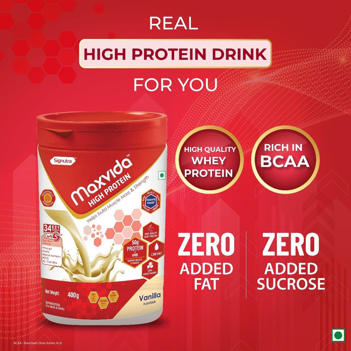 Maxvida High Protein | Builds Muscle Mass & Strength | 400g Vanilla | For Adults