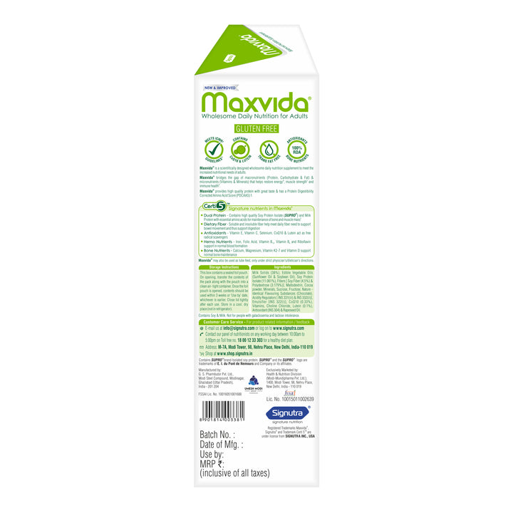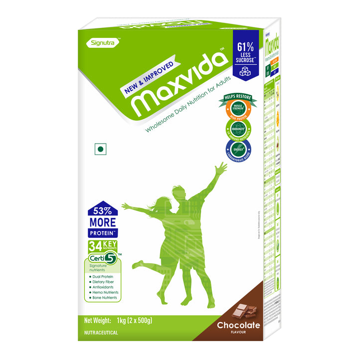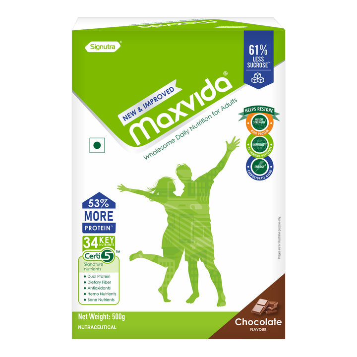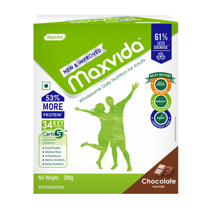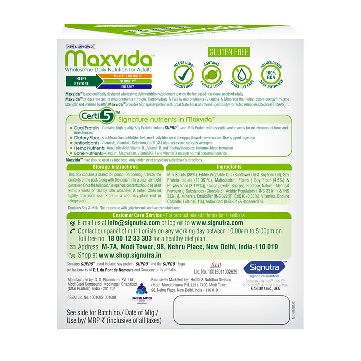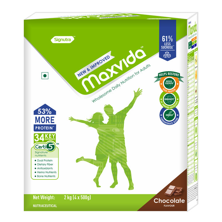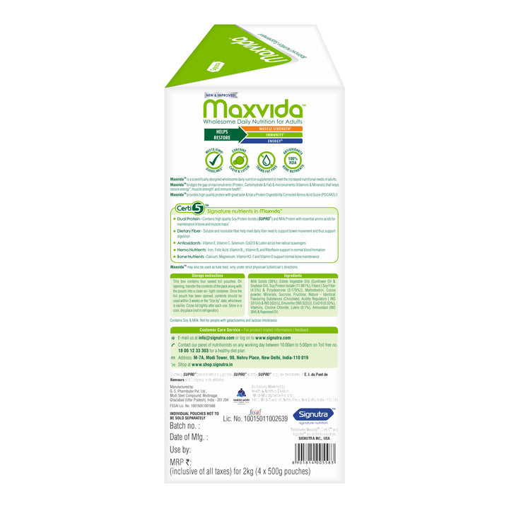 Maxvida is a scientifically designed nutrition that helps meet the increased daily needs of adults. Packed with high-quality protein, essential vitamins, and minerals, it helps boost energy, support muscle strength, and improve immunity. With an ideal PDCAAS score of 1, Maxvida offers easy digestion and absorption of proteins, and it tastes great too! This makes Maxvida a suitable nutrition supplement even for pregnancy.