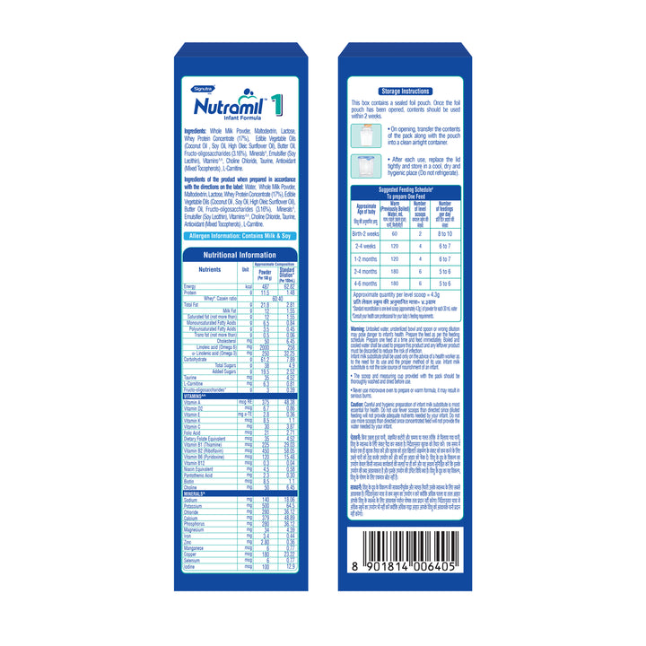 Nutramil Stage 1 Infant formula is a spray dried infant milk substitute for infants upto 6 months.Nutramil Stage 1 contains FOS and Whey : Casein in 60:40 ratio